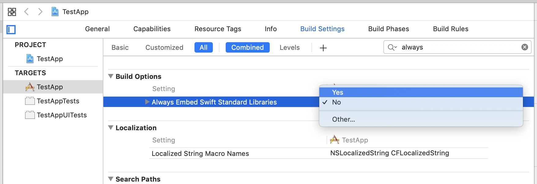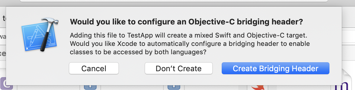 In the popup, confirm by clicking Create Bridging Header.