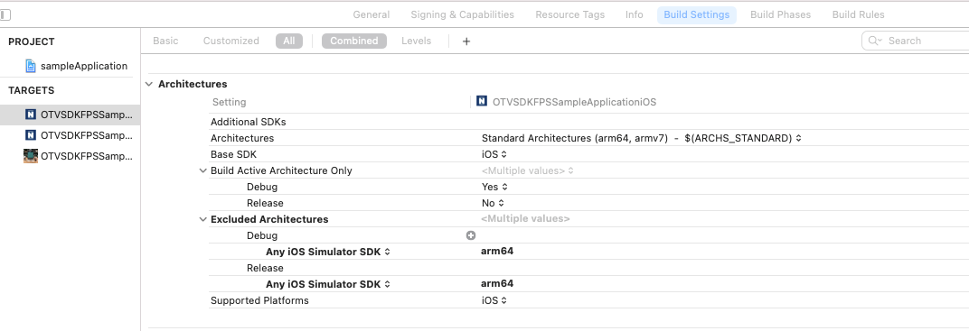 Repeat the process for tvOS but select Any tvOS Simulator SDK for both Debug and Release.