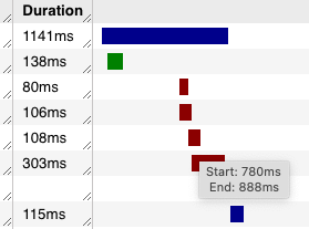 Hovering your mouse over an item in the waterfall allows you to see more timing information.