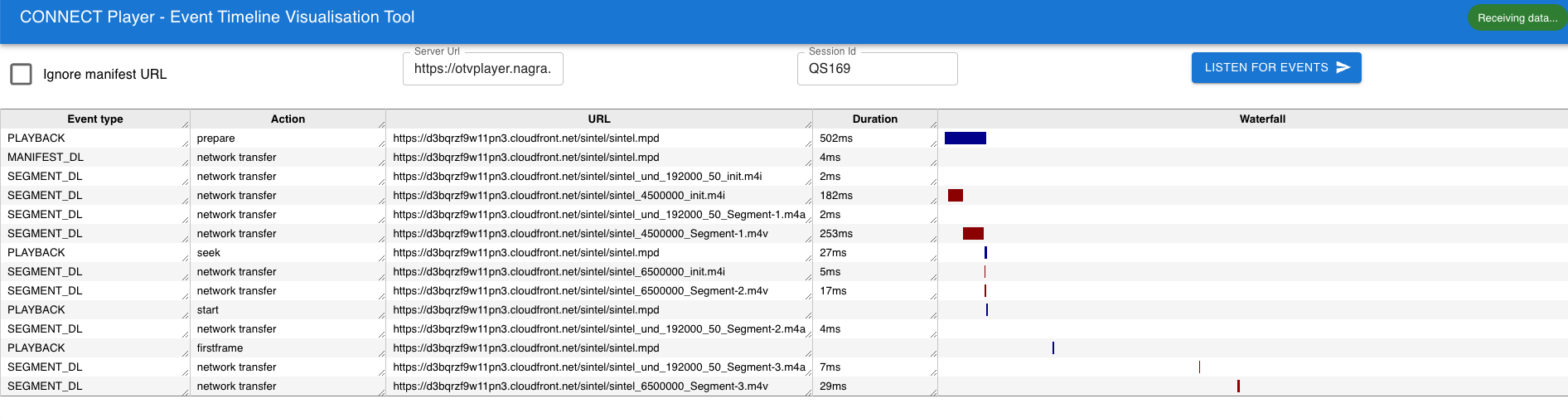 The TV Demo application can be used to generate Event Timeline data to visualise how a stream in a particular environment on your choice of platform performs. This can be done in two ways: