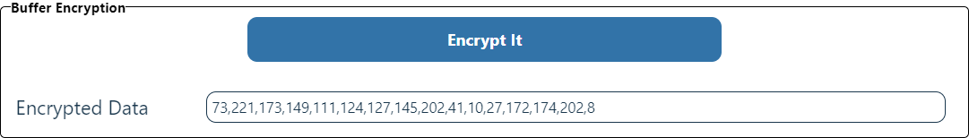 To obtain the encrypted ArrayBuffer, in the Buffer Encryption section, click Encrypt It.