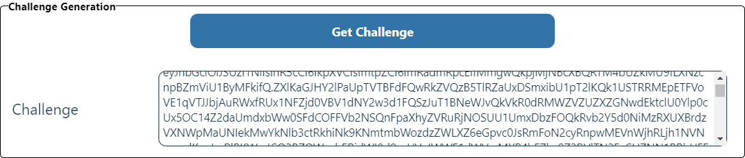To obtain the challenge that secures communication with the backend, in the Challenge Generation section, click Get Challenge.