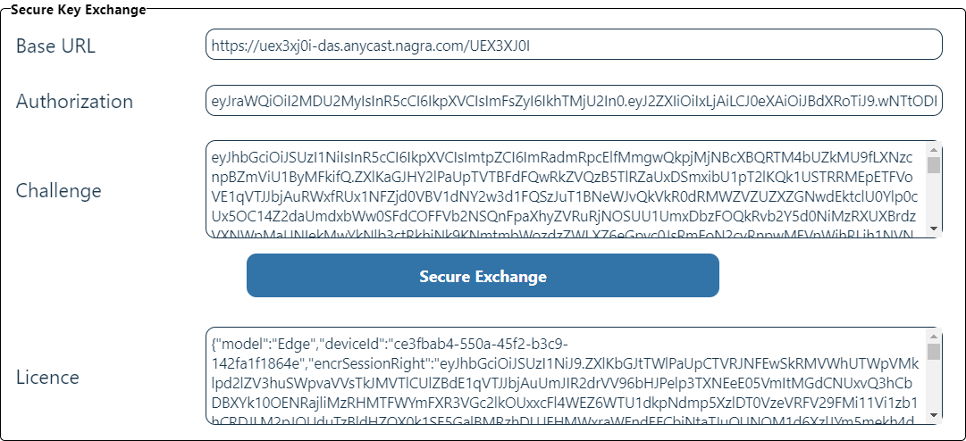 Once authorized, in the Secure Key Exchange section, click Secure Exchange to perform key exchange via the Gateway on behalf of the DAS service.