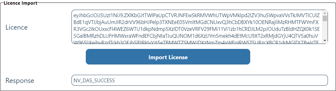 To import the encrypted session rights obtained from the key exchange, click Import License in the Licence Import section.