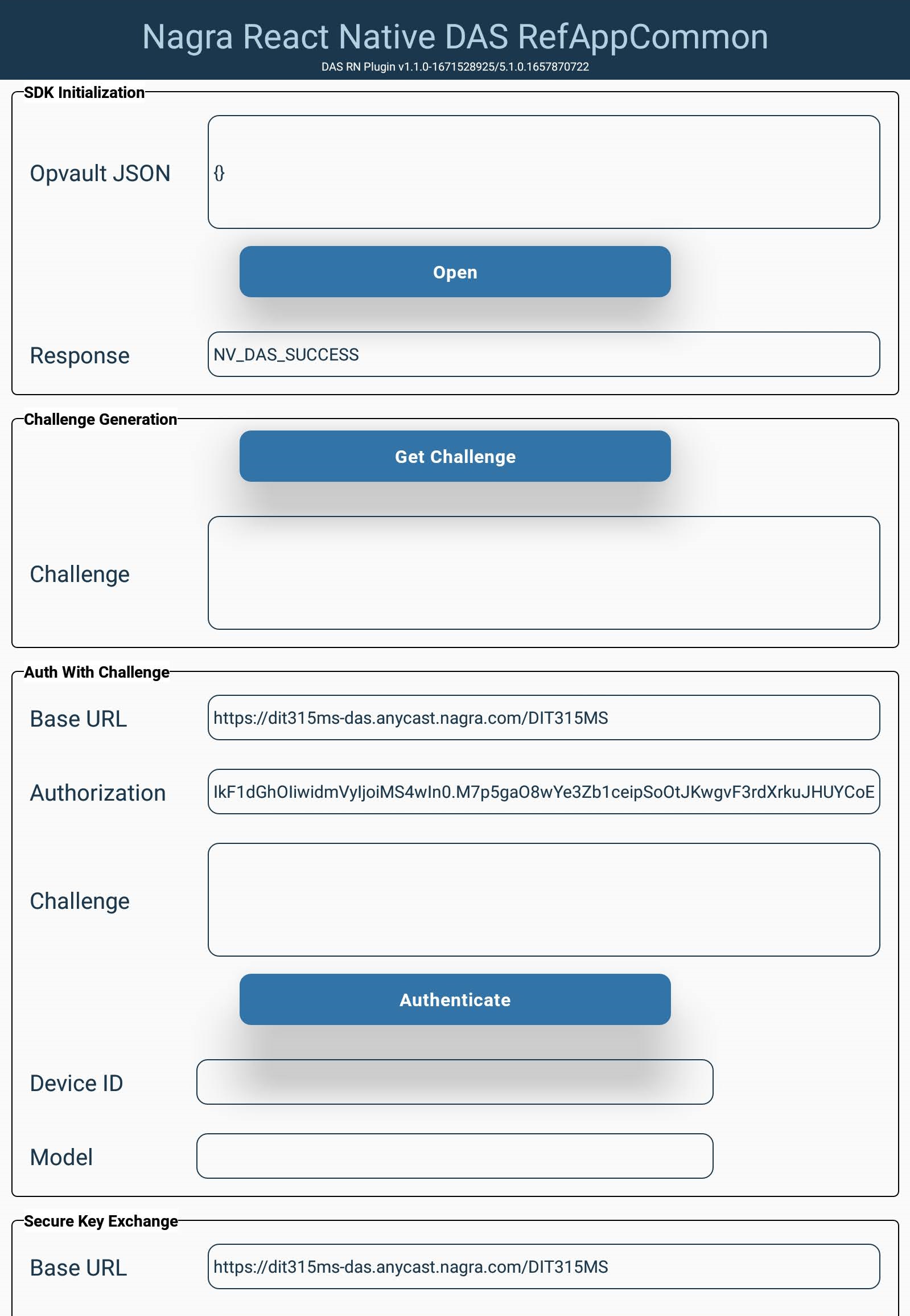 The Common Reference Application for the Web and Handheld implementations of DAS React Native Client SDK is described here.