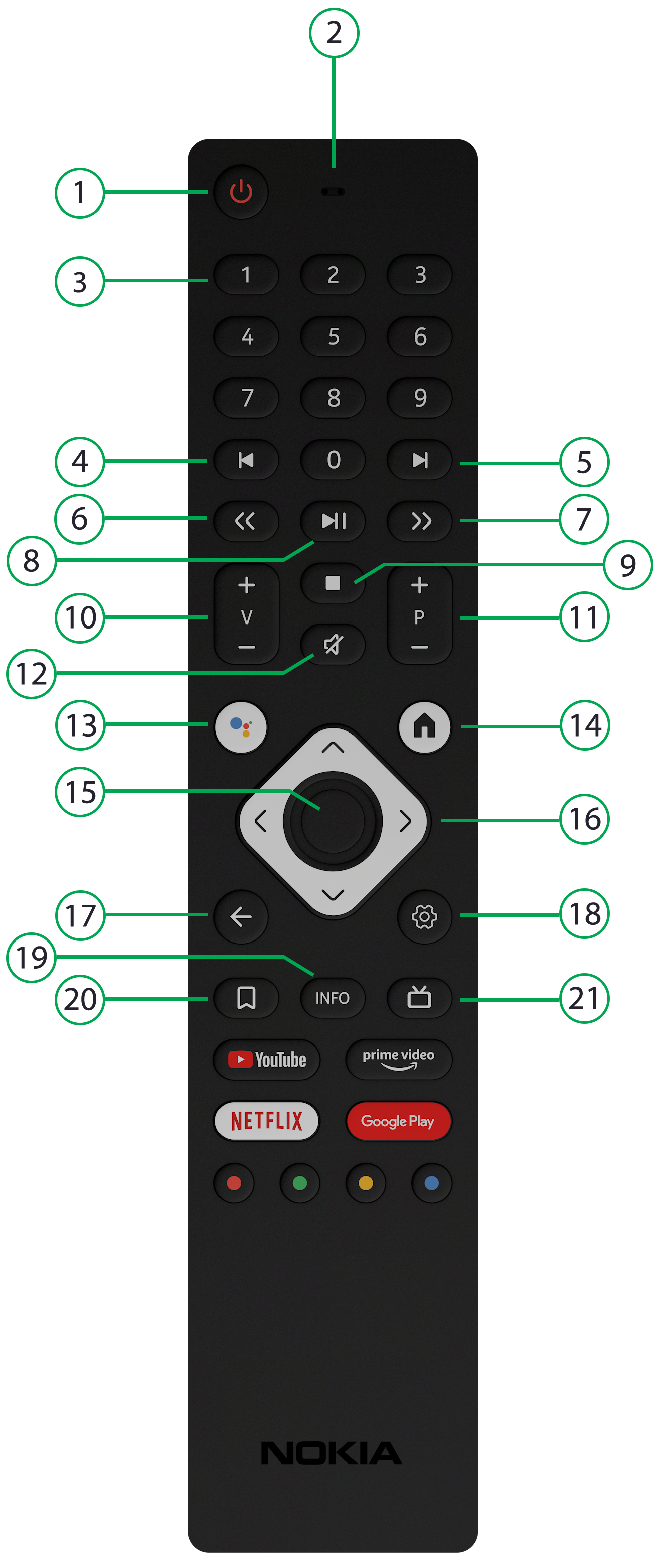 | 21 | Google Live TV – to link this button directly to our TV app, go to Settings > Device Preferences > Favorite App, then select the app. |