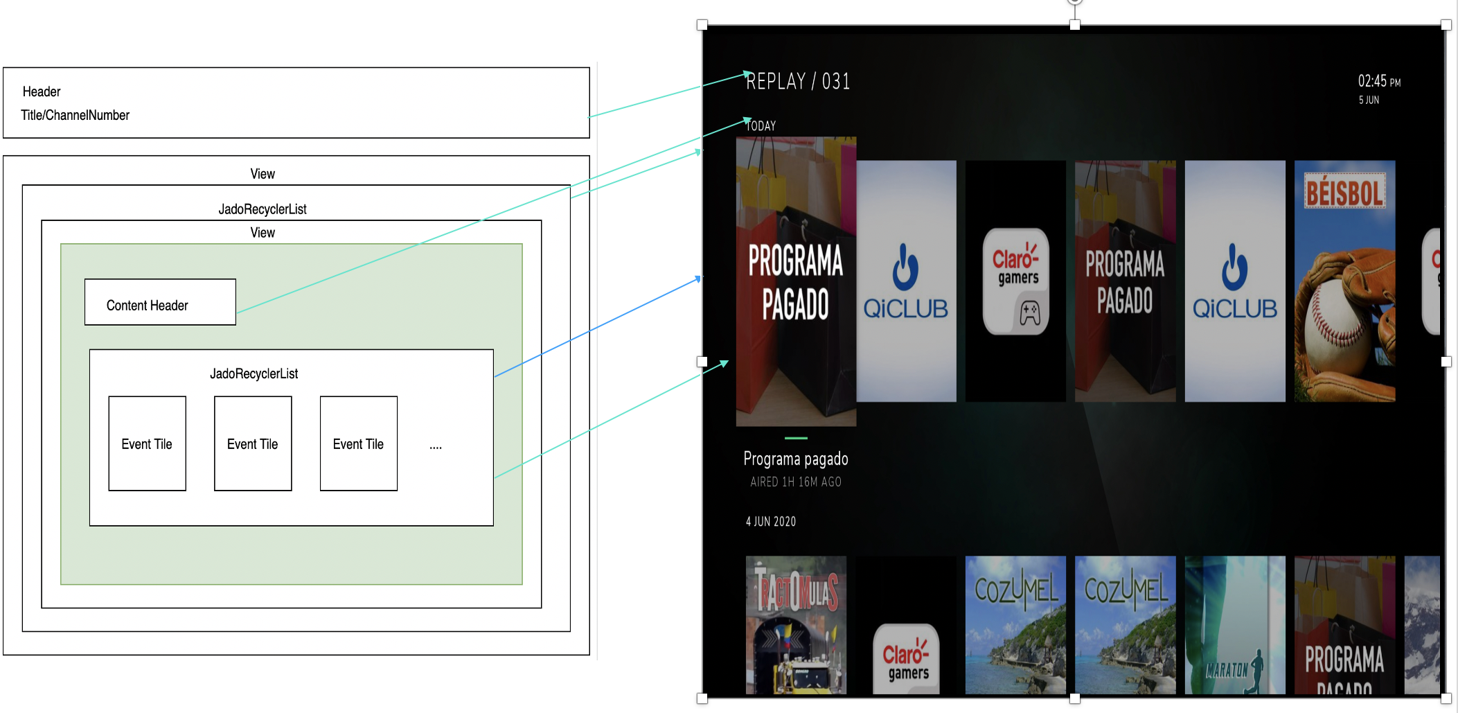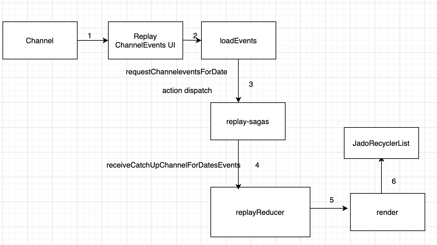 - Events are displayed by fetching data from replayReducer via requestChannelEventsForDate() selector API