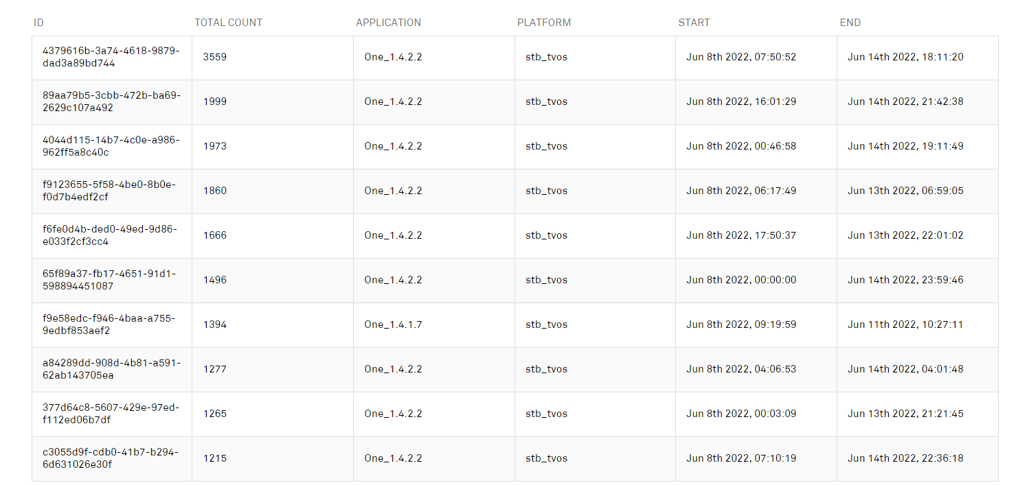 The table displays the list of the devices most affected by the error. Clicking a row in the table opens the relevant Sessions page.