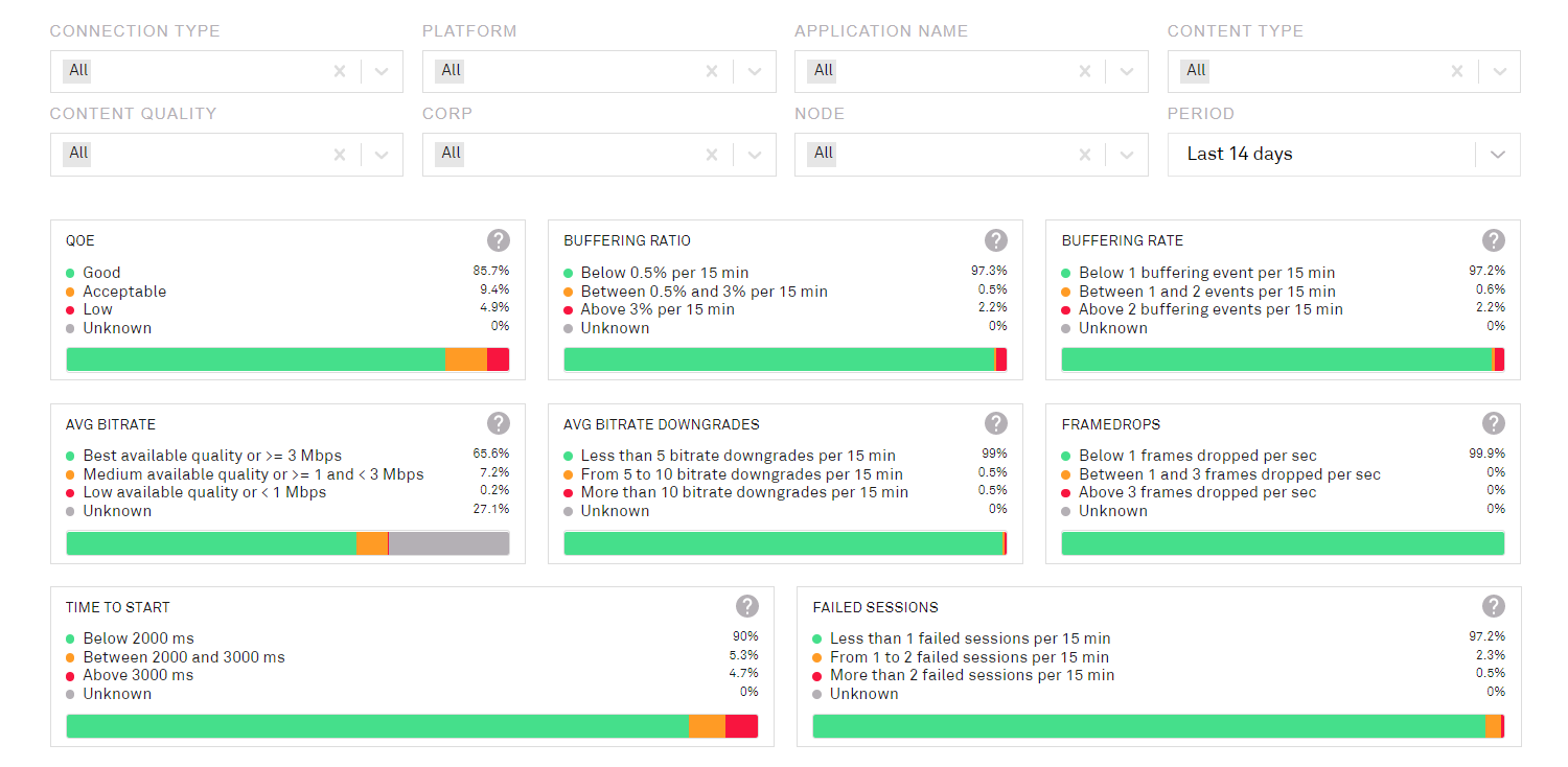 The first page provides an overview of Quality of Service metrics and analytics.