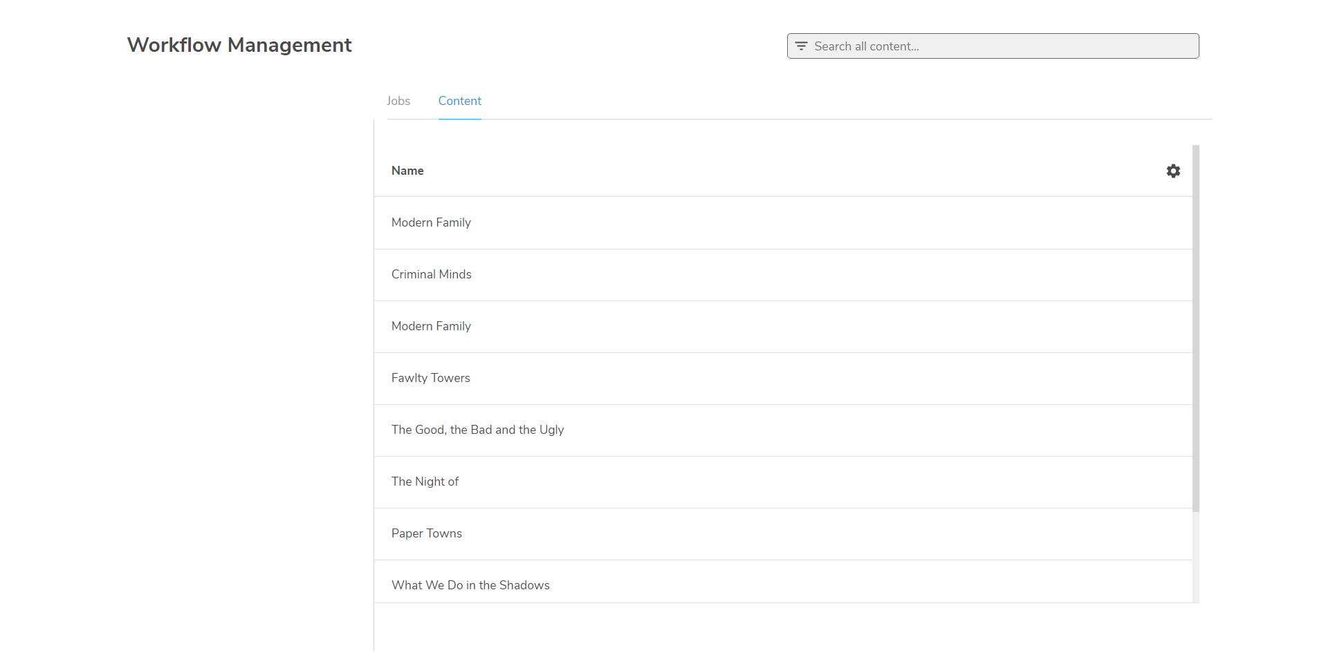 The Content tab lists all the content items which have completed successfully. You can re-run workflows for these content items, see Re-running workflows (Redo).