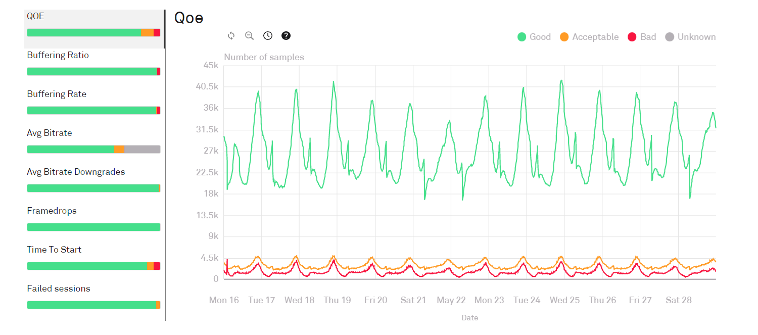 The first page provides an overview of Quality of Service metrics and analytics.
