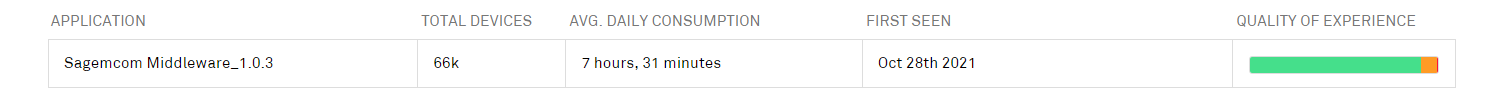 This table shows up to five applications used by the device platform. Clicking a row in this table opens the detailed information page for that application.