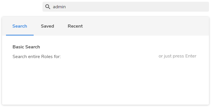 For example, to search Roles for Admin, in the search box, start typing admin. The search will become more specific as you enter more characters.