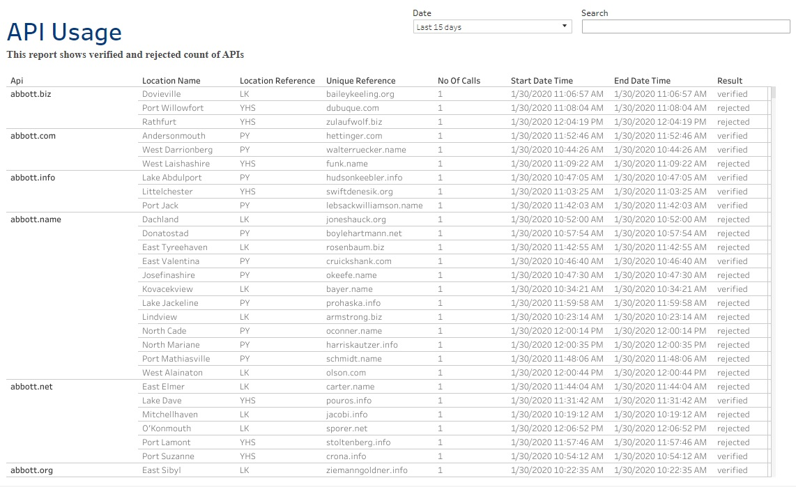 This report shows the verified and rejected count of APIs as part of the B2B voucher feature: