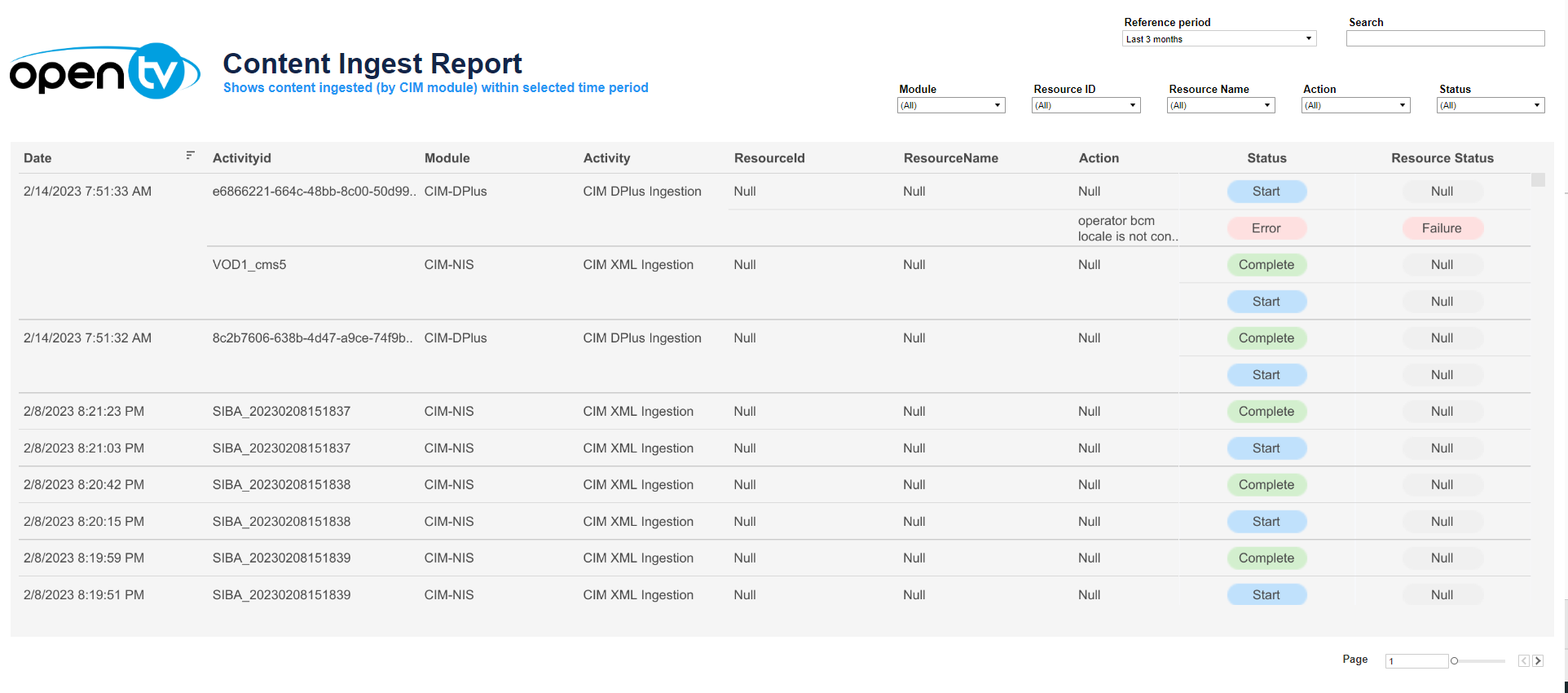 The Content Ingest Report displays details of content ingest operations that happened during the selected time period, including: