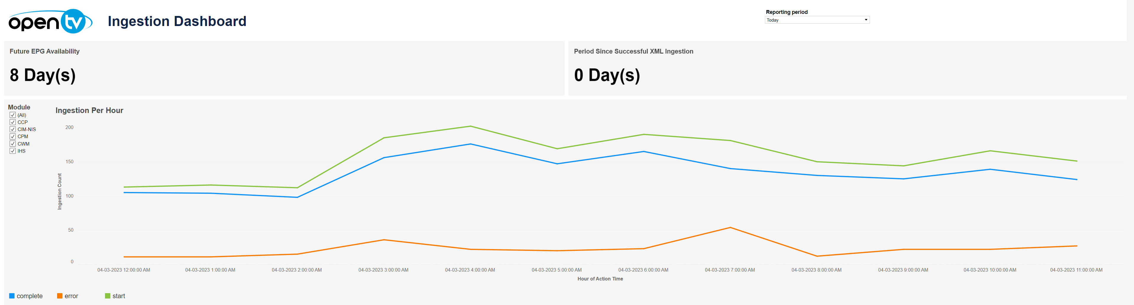 The Ingestion Dashboard comprises: