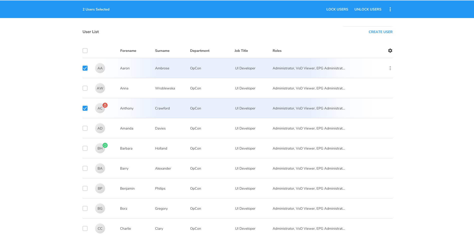 You can select multiple records by clicking the checkboxes and the left end of the row. A blue banner is displayed to complete the necessary action; a menu