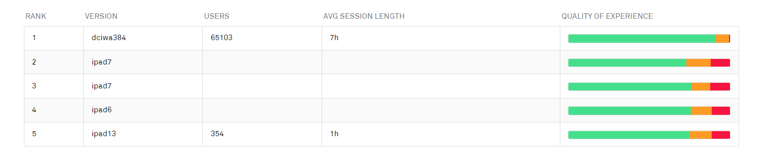 This table shows the five top-performing device models; clicking a row in this table opens the detailed information page for that model.