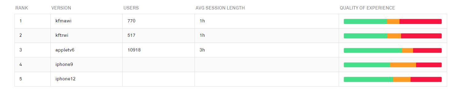 This table shows the five worst-performing device models; clicking a row in this table opens the detailed information page for that model.