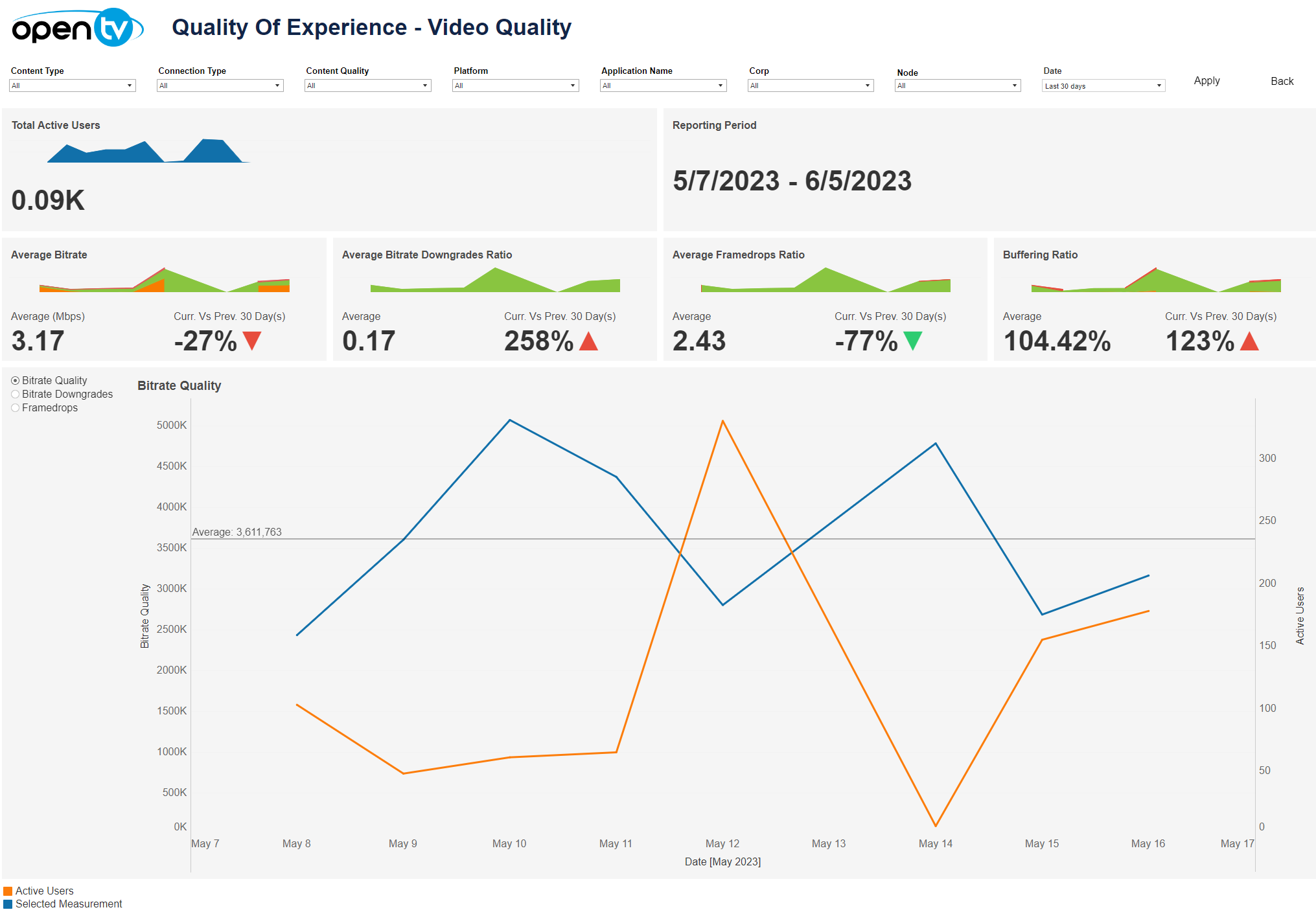- Comparison the average bitrate downgrade ratio versus previous date range.