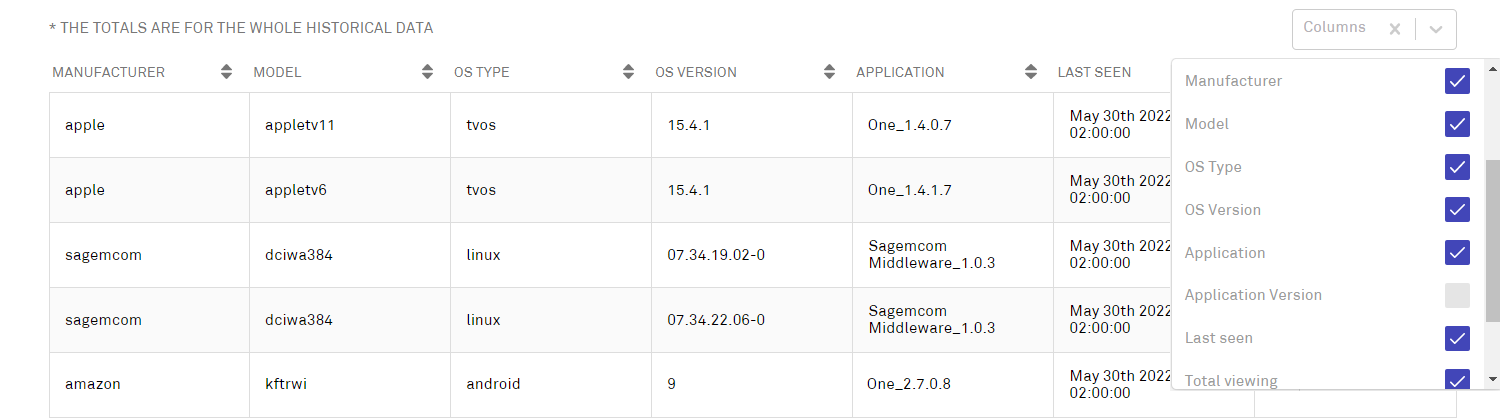Users can select the columns displayed on the page. Columns will be added in the order they are selected.
