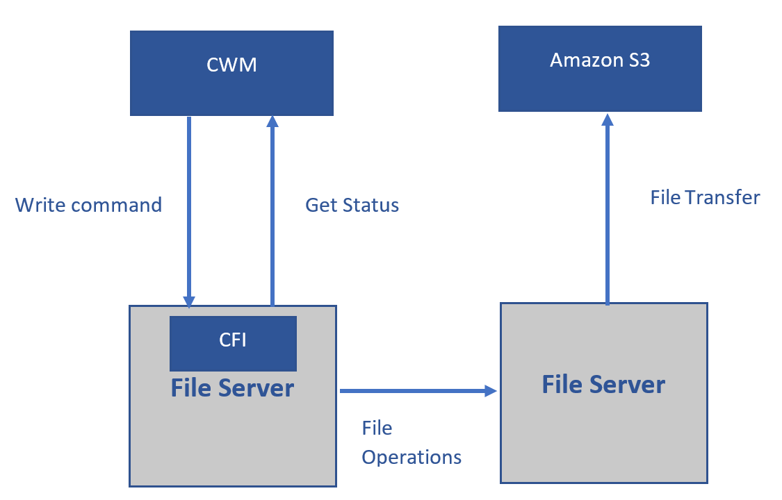- The Content Workflow Manager (CWM) generates an XML file containing the details of the file operation that the CFI is to perform. This XML command file is written into a directory that the CFI polls for commands that it is to execute.