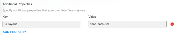 The snap_carousal value creates a large poster-style rail with a single asset in focus: