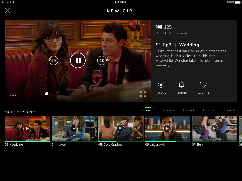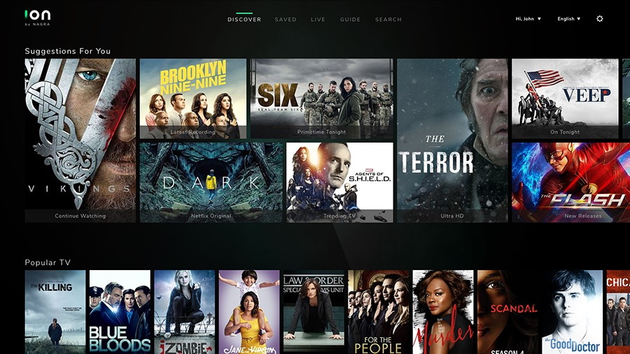 As shown below, the ten-foot design version enables the user to browse the TV shows and movies across available sources, live TV, VOD, etc. In each type, the latest content available to the user is provided.