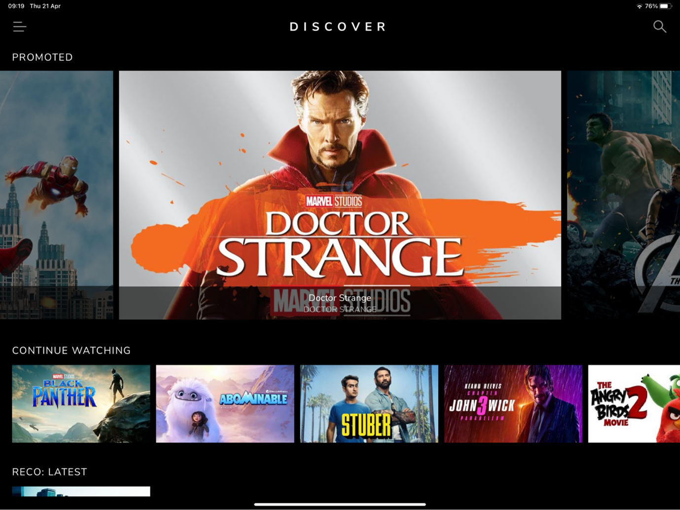 Select the template for the DISCOVER screen and the appropriate layout.