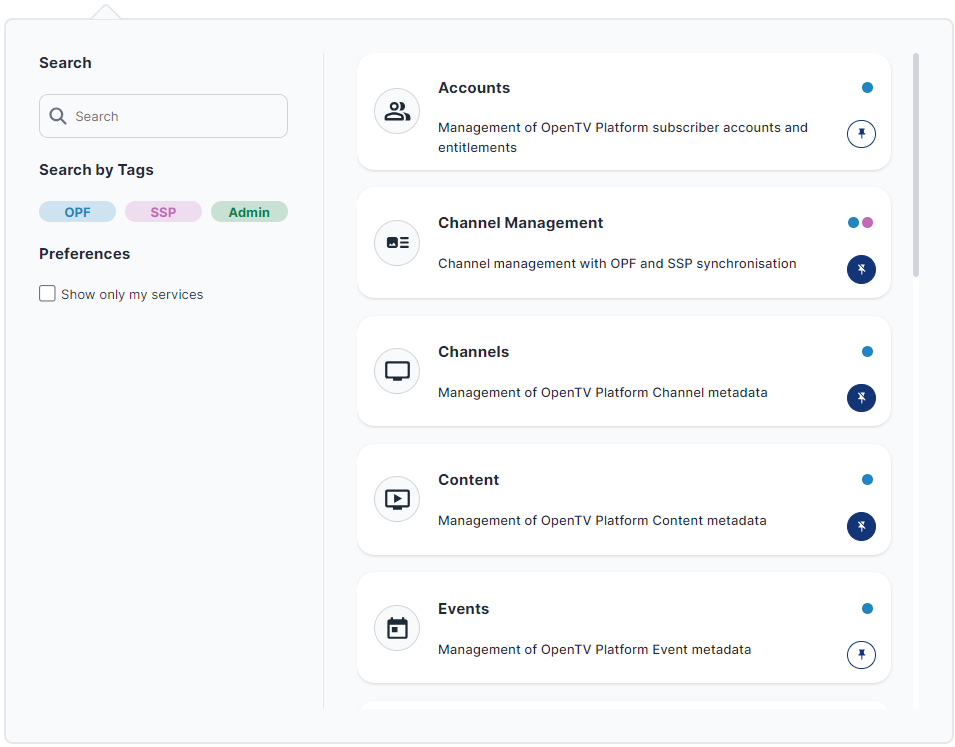 Clicking the OpenTV logo on any page returns you to the Dashboard page.