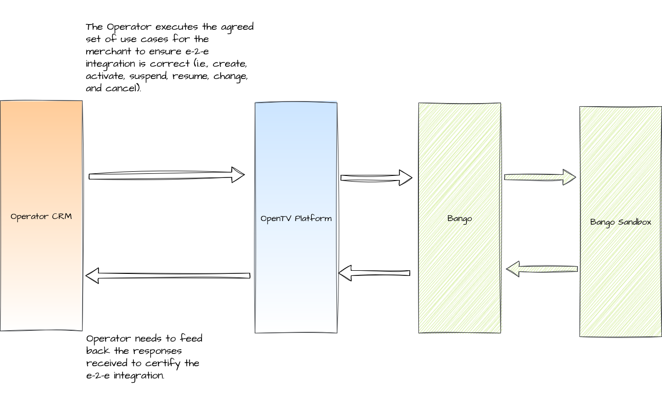 You must certify your integration by testing it using test cases supplied by Bango. You must then share the results of your testing with Bango.