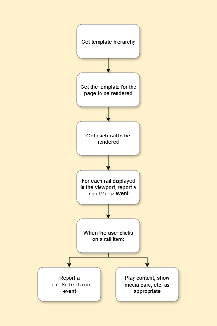 railViewevent. As the user scrolls vertically and the client displays more rails, it must reportrailViewfor each new rail that it displays.When the user clicks on an item in a rail, the client needs to: