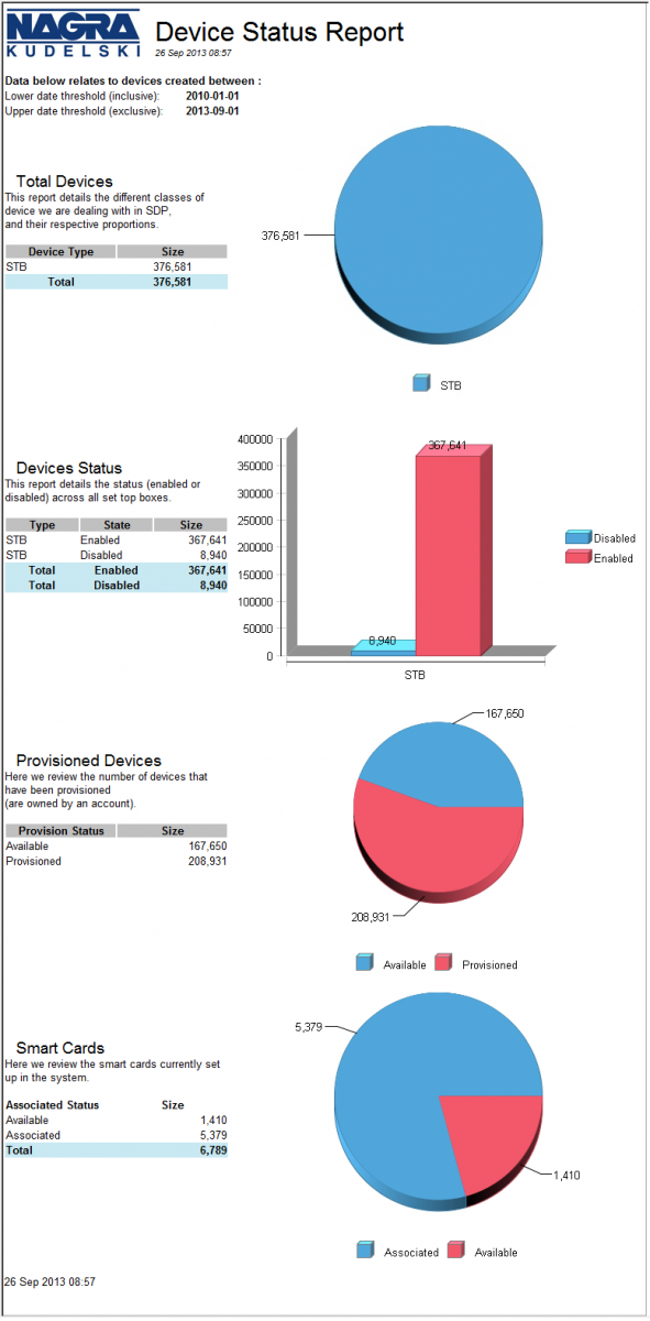 The Device Status Report shows statistics about devices. The report shows following facts.