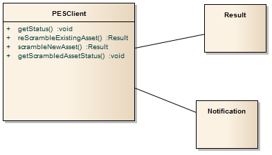 The PESClient class encapsulating the command logic and the connection to the PES Manager is shown in the diagram below.