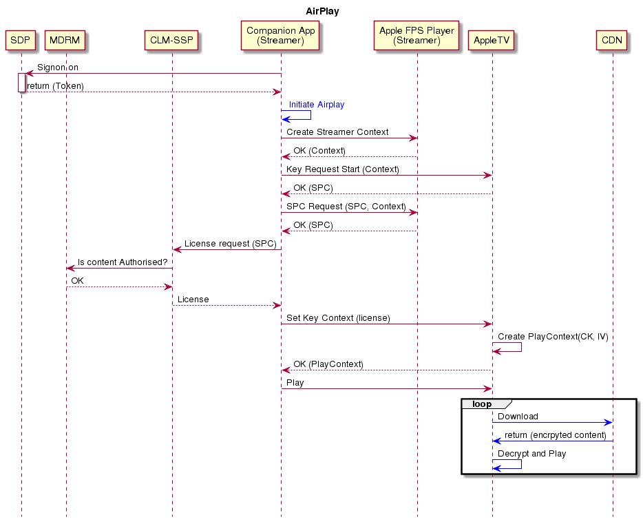- The AirPlay receiver device downloads content directly and uses the licence to decrypt it and play it back.