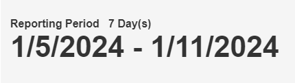 Below the top-right drop-down menus, the report shows the selected Reporting Period day count and specific dates chosen.