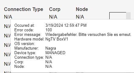 NOTE: If an error code is reported as an empty string, N/A is shown.