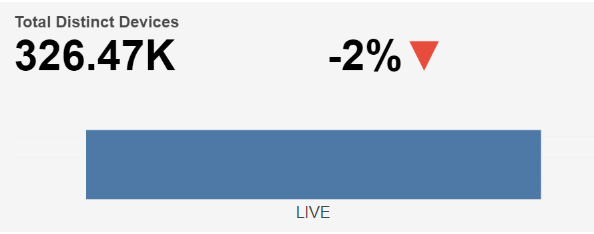 The Total Distinct Device count based on selected time interval is shown at the top left and the percentage change in Total Distinct Device count compared to the directly preceding time interval is shown with an up/down/neutral indicator arrow at the top right.