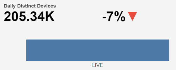 The Daily Distinct Device count based on selected time interval is shown at the top left and the percentage change in Daily Distinct Device count compared to the directly preceding time interval is shown with an up/down/neutral indicator arrow at the top right.