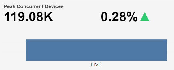 The Peak Concurrent Device count based on selected time interval is shown at the top left and the percentage change in Peak Concurrent Device count compared to the directly preceding time interval is shown with an up/down/neutral indicator arrow at the top right.