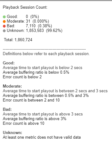 The table is sorted by Distinct Device count. Individual rows can be highlighted by single-clicking. A mouseover tooltip gives further information and definitions for QoE.