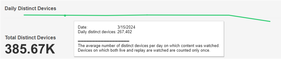 Below the top-left drop-down menus, the report shows a chart and count for Daily Distinct Devices based on the selected filters. The mouseover tooltip gives further information and definitions.