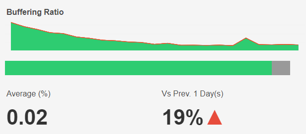 The average buffering percentage based on the selected time interval and filters is shown at the bottom left and the percentage change compared to the directly preceding time interval is shown with an up/down/neutral indicator arrow at the bottom right.