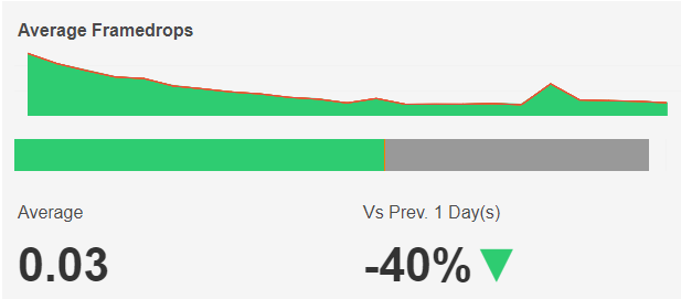 The Average Framedrops based on the selected time interval and filters is shown at the bottom left and the percentage change compared to the directly preceding time interval is shown with an up/down/neutral indicator arrow at the bottom right.