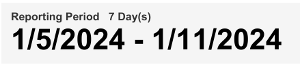 Below the top-left page title, the report shows the selected Reporting Period day count and specific dates chosen.