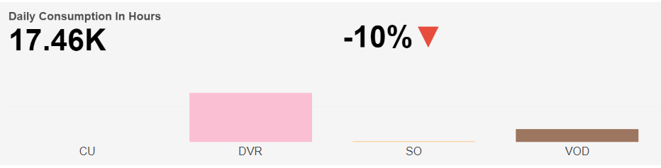 Next, the report shows a bar chart for Daily Consumption In Hours, split into four watch categories: CU, DVR, SO, and VOD, based on the selected time interval.