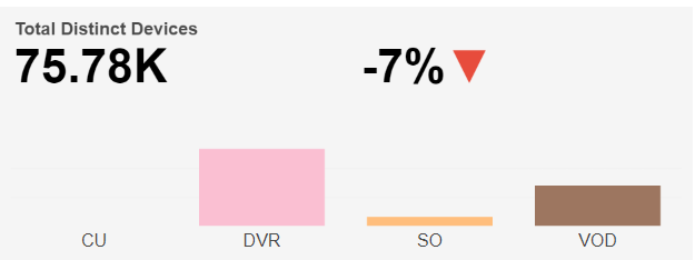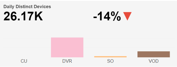 Next, the report shows a bar chart for Daily Distinct Devices, split into four watch categories: CU, DVR, SO, and VOD, based on the selected time interval.