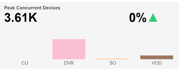 The Peak Concurrent Device count based on the selected time interval is shown at the top left and the percentage change in Peak Concurrent Device count compared to the directly preceding time interval is shown with an up/down/neutral indicator arrow at the top right.